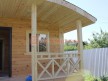 На террасе при условии что она есть делаем перила из строганной доски со всех сторон, столбы террасные также строганные, а не обрезки профилированного бруса с шипом и пазом. Домкратики на столбах для дальнейшей регулировки. Балясины будут сделаны аккуратно. Обратите внимание что в дешёвых случаях это может быть и будет просто вагонка прибирая к неотесанной доске снаружи и столбы будут не квадратные а просто профилированный брус как на видео.