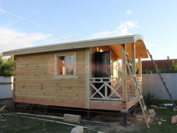Такая одноэтажная баня 4х3 может быть построена из бруса. Ориентировочный срок строительства 9 дней.