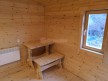 В комплект бани входит стол и две скамейки из доски 19мм, как на фото. Есть комплекты из более толстой доски а также из кедра, смотрите в доп комплектации.