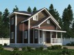 На фото представлен проект аккуратного дома №161 габаритами 7.5х8.5 метров и отличной планировкой общей площадью 95 квадратных метров. Можно выделить несколько особенностей проекта: терраса, эркер, туалет, санузел. Сруб с мансардой, может использоваться как зимний, для постоянного проживания.
