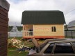 Из профилированного сухого бруса 9х14см, 14х14 см или 14х19 см. Сборка сруба в теплый угол на нагеля или гвозди 200 мм со сверлением отверстия в верхнем брусе (в зависимости от вида бруса).