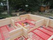 Из 9х14см, 14х14 см или 14х19 см. Сборка сруба в теплый угол на нагеля или гвозди 200 мм со сверлением отверстия в верхнем брусе (в зависимости от вида бруса).