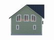 На фото представлен проект жилого дома №256 габаритами 7.5х8.5 метров и отличной планировкой общей площадью 124 квадратных метров. Можно выделить несколько особенностей проекта: эркер, туалет, ванная, санузел, панорамные окна. Особняк полутораэтажный, может использоваться как зимний, для постоянного проживания, коттедж.