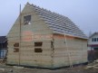 Из профилированного сухого бруса 9х14см, 14х14 см или 14х19 см. Сборка сруба в теплый угол на нагеля или гвозди 200 мм со сверлением отверстия в верхнем брусе (в зависимости от вида бруса).