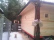 На фото баня с душевой комнатой, санузлом (здесь располагаются унитаз, раковина и душевое оборудование с бойлером), комнатой отдыха и предбанником. Баня одноэтажная с чердаком, общая площадь 33 кв.м. Построена по каркасной технологии, однако этот проект также можно строить из профилированного бруса — сухой, клееный или естественной влажности на выбор.