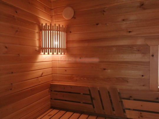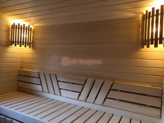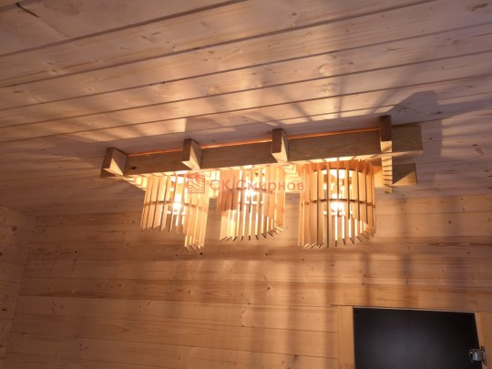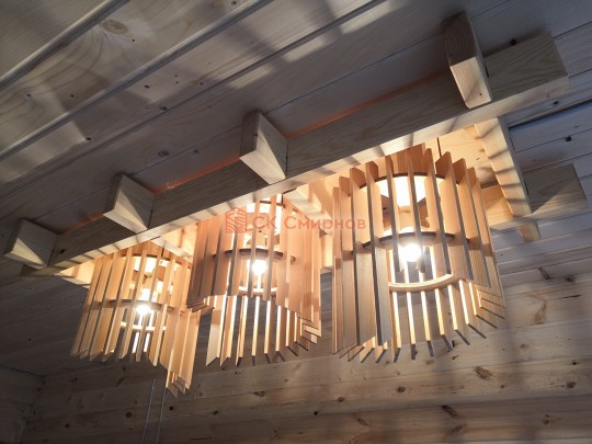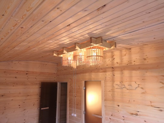 В этой серии бань делается электропроводка открытая, выключатели, светильники, розетки.