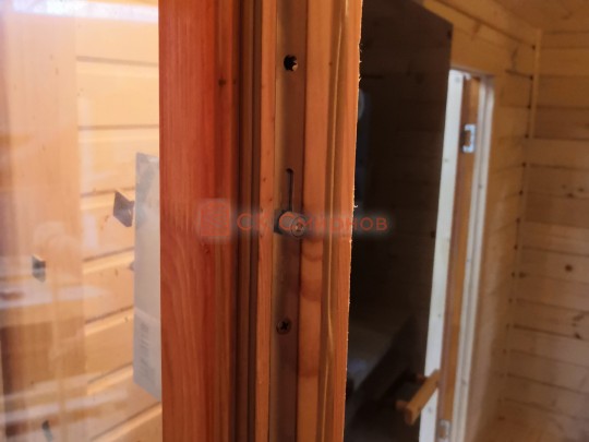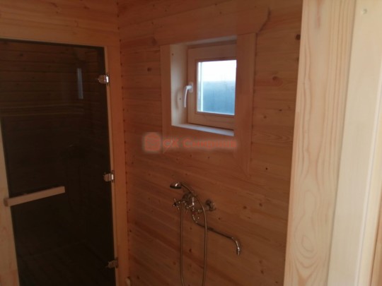 В данной бане мы используем окна вытянутой формы не открывающиеся по умолчанию, но можно за небольшую доплату сделать их открывающимися.