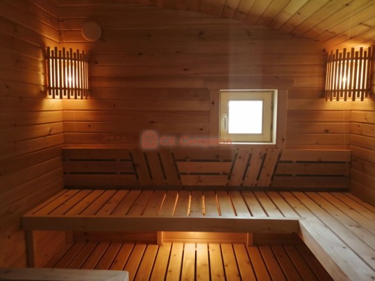 Стандартная планировка включает в себя комнату отдыха, парную, душевое помещение и санузел (здесь можно установить унитаз, раковину и уже расположена автономная душевая система с бойлером).