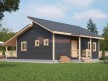 На фото представлен проект деревянного дома №297 габаритами 10х12.5 метров и отличной планировкой общей площадью 102 квадратных метров. Можно выделить несколько особенностей проекта: терраса, туалет, ванная, санузел, сауна. Это современный одноэтажный коттедж с отлично продуманной планировкой. Есть два входа на разные стороны, один из которых выходит на крытую террасу. Кухня объединена с гостиной, 2 спальни изолированы друг от друга.