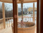 Японская бочка «Офуро» или купель по-нашему — великолепный способ разнообразить банные процедуры. Такая купель расчитана на 3-4 человек, оснащена скамеечками, погружной печью и тентом (чтобы не попадали пыль, листья).